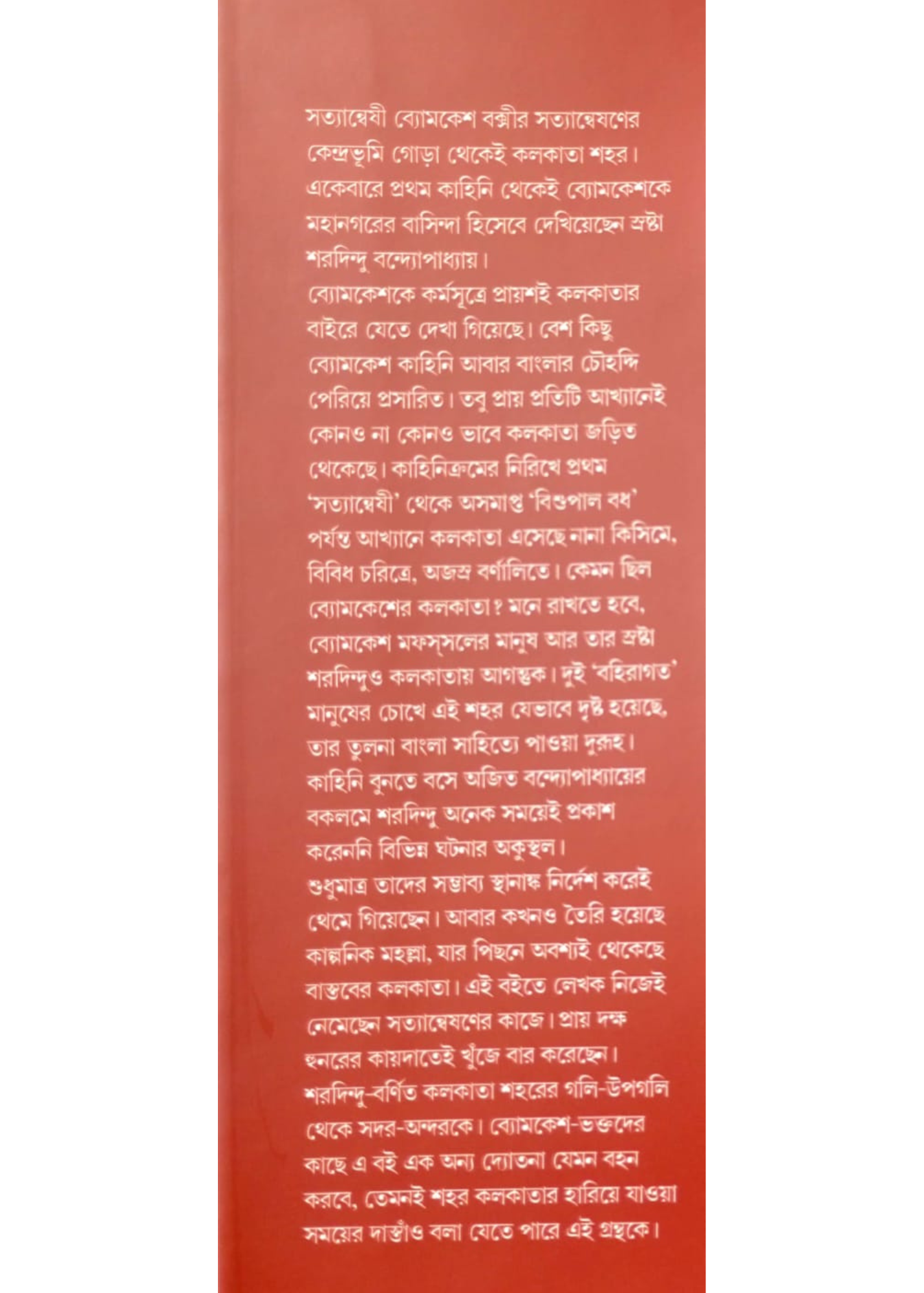 সত্যান্বেষী ব্যোমকেশ বক্সীর সত্যান্বেষণের কেন্দ্রভূমি গোড়া থেকেই কলকাতা শহর। একেবারে প্রথম কাহিনি থেকেই ব্যোমকেশকে মহানগরের বাসিন্দা হিসেবে দেখিয়েছেন স্রষ্টা শরদিন্দু বন্দ্যোপাধ্যায়। ব্যোমকেশকে কর্মসূত্রে প্রায়শই কলকাতার বাইরে যেতে দেখা গিয়েছে। বেশ কিছু ব্যোমকেশ কাহিনি আবার বাংলার চৌহদ্দি পেরিয়ে প্রসারিত। তবু প্রায় প্রতিটি আখ্যানেই কোনও না কোনও ভাবে কলকাতা জড়িত থেকেছে। কাহিনিক্রমের নিরিখে প্রথম 'সত্যান্বেষী' থেকে অসমাপ্ত 'বিশুপাল বধ' পর্যন্ত আখ্যানে কলকাতা এসেছে নানা কিসিমে, বিবিধ চরিত্রে, অজস্র বর্ণালিতে। কেমন ছিল ব্যোমকেশের কলকাতা? মনে রাখতে হবে, ব্যোমকেশ মফস্সলের মানুষ আর তার স্রষ্টা শরদিন্দুও কলকাতায় আগন্তুক। দুই 'বহিরাগত' মানুষের চোখে এই শহর যেভাবে দৃষ্ট হয়েছে, তার তুলনা বাংলা সাহিত্যে পাওয়া দুরূহ। কাহিনি বুনতে বসে অজিত বন্দ্যোপাধ্যায়ের বকলমে শরদিন্দু অনেক সময়েই প্রকাশ করেননি বিভিন্ন ঘটনার অকুস্থল।