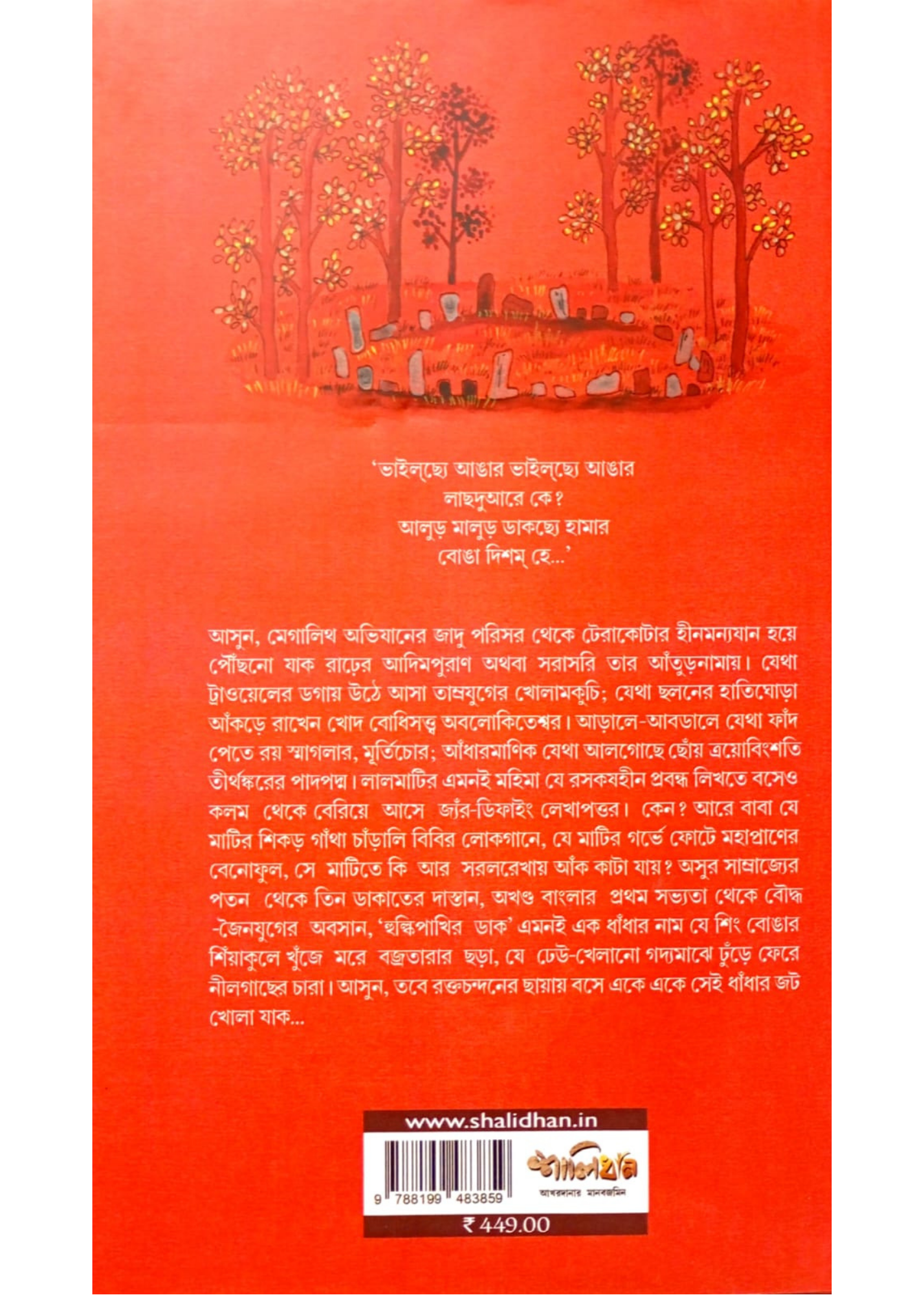 আসুন, মেগালিথ অভিযানের জাদু পরিসর থেকে টেরাকোটার হীনমন্যযান হয়ে পৌঁছনো যাক রাঢ়ের আদিমপুরাণ অথবা সরাসরি তার আঁতুড়নামায়। যেথা ট্রাওয়েলের ডগায় উঠে আসা তাম্রযুগের খোলামকুচি; যেথা ছলনের হাতিঘোড়া আঁকড়ে রাখেন খোদ বোধিসত্ত্ব অবলোকিতেশ্বর। আড়ালে-আবডালে যেথা ফাঁদ পেতে রয় স্মাগলার, মূর্তিচোর; আঁধারমাণিক যেথা আলগোছে ছোঁয় ত্রয়োবিংশতি তীর্থঙ্করের পাদপদ্ম। লালমাটির এমনই মহিমা যে রসকষহীন প্রবন্ধ লিখতে বসেও কলম থেকে বেরিয়ে আসে জাঁর-ডিফাইং লেখাপত্তর। কেন? আরে বাবা যে মাটির শিকড় গাঁথা চাঁড়ালি বিবির লোকগানে, যে মাটির গর্ভে ফোটে মহাপ্রাণের বেনোফুল, সে মাটিতে কি আর সরলরেখায় আঁক কাটা যায়? অসুর সাম্রাজ্যের পতন থেকে তিন ডাকাতের দাস্তান, অখণ্ড বাংলার প্রথম সভ্যতা থেকে বৌদ্ধ -জৈনযুগের অবসান, 'হুদ্ধিপাখির ডাক' এমনই এক ধাঁধার নাম যে শিং বোঙার শিয়াকুলে খুঁজে মরে বজ্রতারার ছড়া, যে ঢেউ-খেলানো গদ্যমাঝে ছুঁড়ে ফেরে নীলগাছের চারা। আসুন, তবে রক্তচন্দনের ছায়ায় বসে একে একে সেই ধাঁধার জট খোলা যাক...