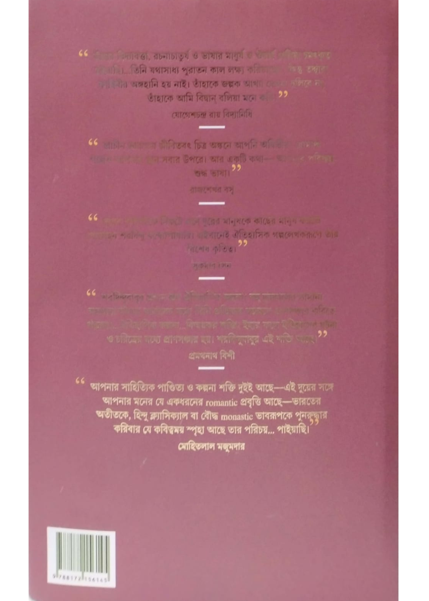 ইতিহাসকে গল্পের ভেতরে বন্দি করেছেন অভিনব কৌশলে। সুকুমার সেন দেখিয়েছেন: 'প্রাগৈতিহাসিক যুগ থেকে সপ্তদশ শতাব্দী পর্যন্ত শরদিন্দুবাবুর ঐতিহাসিক গল্পের কালপ্রসার। এর মধ্যে কোথাও গল্পের পরিবেশ গল্পরসের তীক্ষ্ণতার হানি করেনি। দূরের দৃশ্যপটকে নিকটে এনে দূরের মানুষকে কাছের মানুষ করতে পেরেছেন শরদিন্দু বন্দ্যোপাধ্যায়।' এ বিষয়ে তিনি ছিলেন সার্থক ও সতর্ক স্রষ্টা। এক সাক্ষাৎকারে শরদিন্দু বলেছিলেন: 'ইতিহাস থেকে চরিত্রগুলো কেবল নিয়েছি; কিন্তু গল্প আমার নিজের। সর্বদা লক্ষ্য রেখেছি কি করে সেই যুগকে ফুটিয়ে তোলা যায়। যে সময়ের গল্প তখনকার রীতি নীতি, আচার ব্যবহার, অস্ত্র, আহার, বাড়িঘর ইত্যাদি খুঁটিনাটি সব জানা না থাকলে যুগকে ফুটিয়ে তোলা যায় না। এরপর আছে ভাষা। ঐতিহাসিক গল্পের ভাষাও হবে যুগোপযোগী।' রহস্যসন্ধানী ব্যোমকেশ বক্সীর অমর স্রষ্টা শরদিন্দু বন্দ্যোপাধ্যায়ের ইতিহাস-আশ্রিত গল্প-উপন্যাসে কাহিনী ও ইতিহাস যুগপৎ 'জীবন্ত' হয়ে উঠেছে। বৌদ্ধযুগ, গৌড়বঙ্গ, চৈতন্যযুগ, প্রাক-মুঘল কিংবা মুঘল যুগ অথবা অদূর অতীতের পোর্তুগিজ-ইংরেজ অধিকৃত বাংলার সমকাল দুর্নিবার হয়ে উঠেছে কল্পনা ও বর্ণনার অশেষ গুণে, রচনা ও গল্পরসের অনিবার্য সৃষ্টিতে। তিনি বলতেন: 'ইতিহাসের গল্প লিখেই বেশি তৃপ্তি পেয়েছি।' পরিশ্রমী সম্পাদনায় দুই মলাটের মধ্যে সাজিয়ে দেওয়া শরদিন্দুর সমস্ত ইতিহাস-নির্ভর উপন্যাস (পাঁচটি) এবং গল্প (সতেরোটি) পাঠকদের তৃপ্তি দেবে প্রত্যাশার চেয়ে বেশি