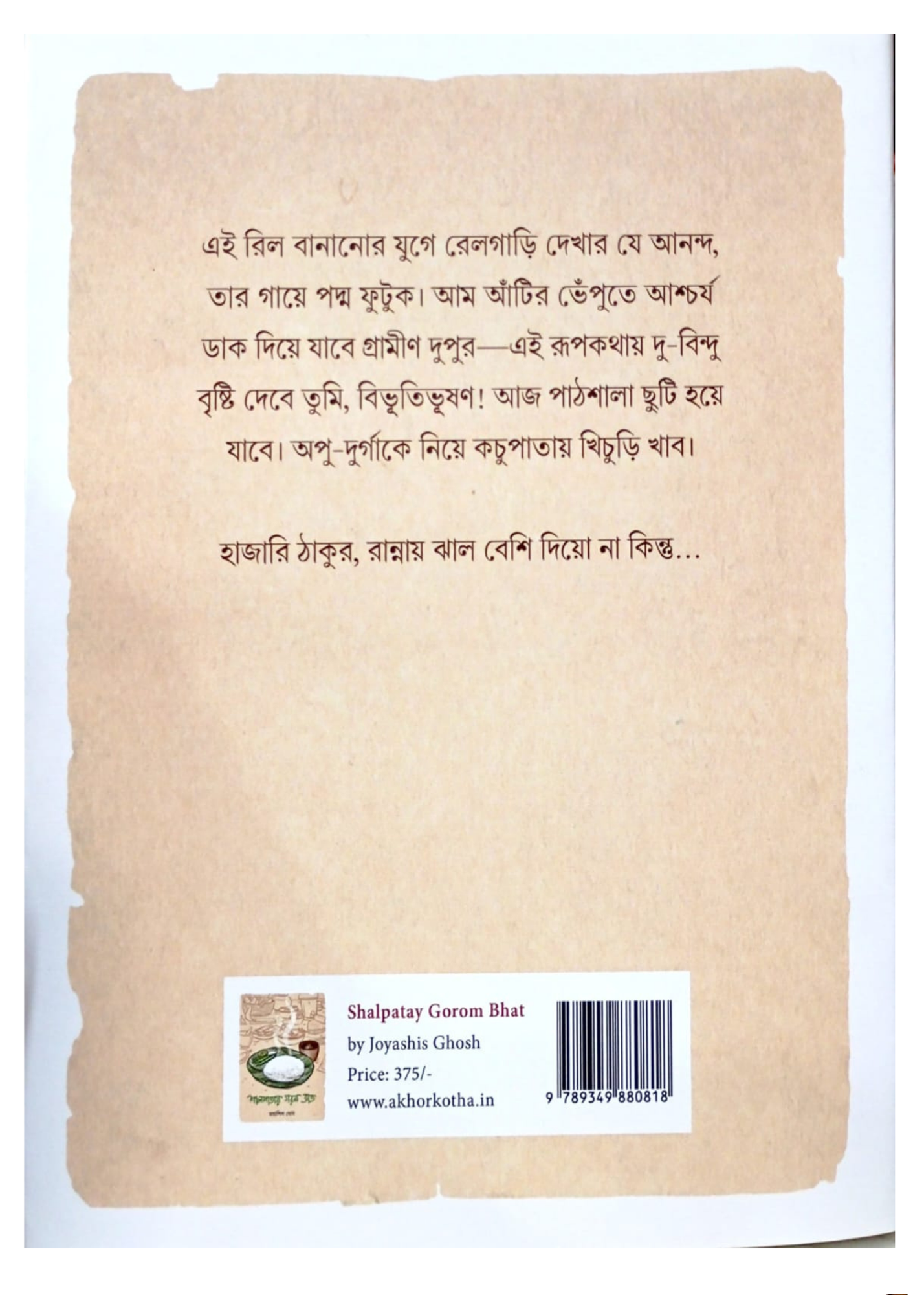 এই রিল বানানোর যুগে রেলগাড়ি দেখার যে আনন্দ, তার গায়ে পদ্ম ফুটুক। আম আঁটির ভেঁপুতে আশ্চর্য ডাক দিয়ে যাবে গ্রামীণ দুপুর এই রূপকথায় দু-বিন্দু বৃষ্টি দেবে তুমি, বিভূতিভূষণ। আজ পাঠশালা ছুটি হয়ে যাবে। অপু-দুর্গাকে নিয়ে কচুপাতায় খিচুড়ি খাব।