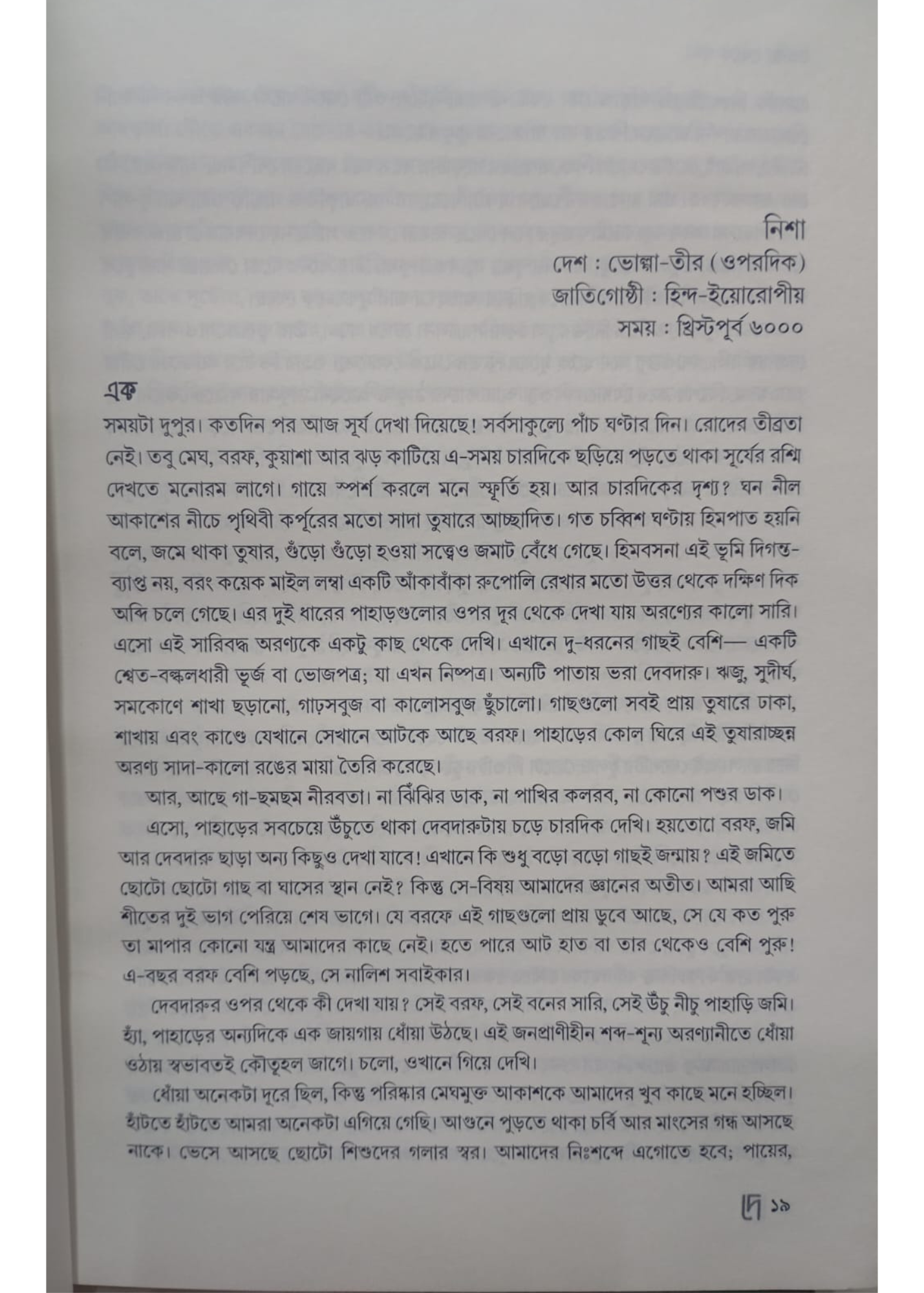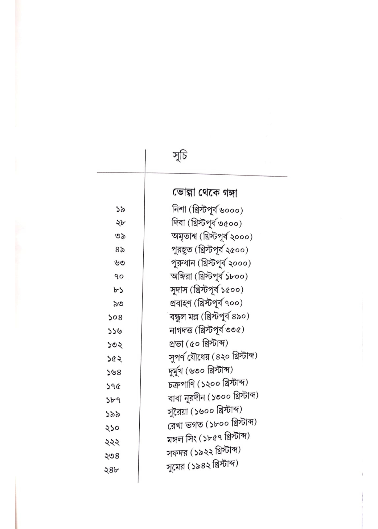 প্রায় ৬০০০ খ্রিষ্টপূর্বাব্দে ভোল্গা নদীর তীরে যে মানব গোষ্ঠী পরিবার স্থাপন করেছিল, তাদেরই আবাস ও জীবন নিয়ে রচিত হয়েছে প্রথম গল্পটির দৃশ্যপট। ক্রমে সেই মানুষ মধ্য ভোল্গাতটে অগ্রসর হয়ে মধ্য এশিয়া অতিক্রম করেছিল। উত্তর কুরু, তাজিকিস্তান পেরিয়ে একসময় সমগ্র গান্ধার এলাকা জুড়ে বসতি স্থাপন করেছিল এই আর্যরা। ইতিহাসের এই ধারায় বিংশ শতাব্দীতে পৌঁছে সমাপ্ত হয়েছে গ্রন্থটির আখ্যান।